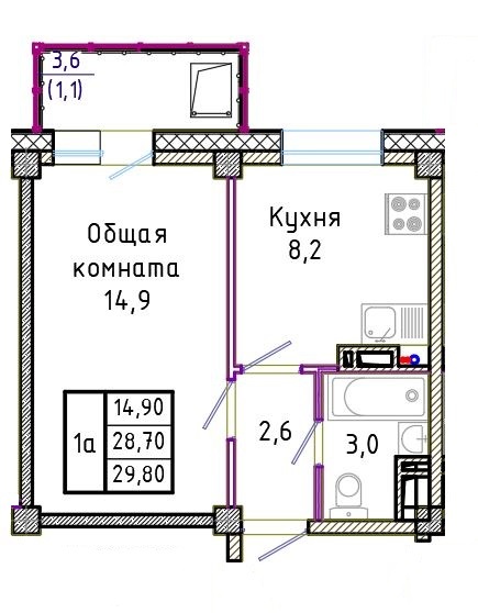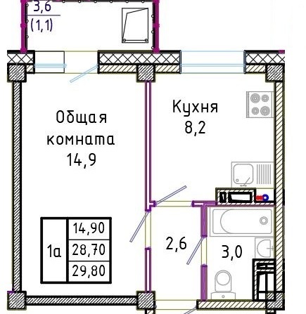 Площадь.........................................от 29,80 кв.м.