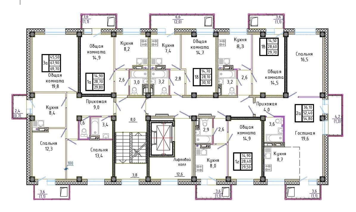Площадь.........................................от 54,80 кв.м.